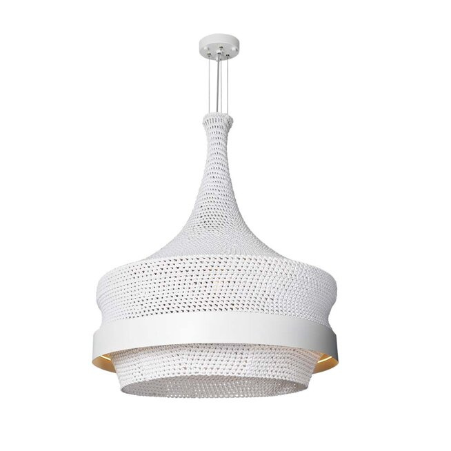 Ta elegancka lampa sufitowa o nazwie "DOTA O" to znakomity wybór dla miłośników nowoczesnego designu i subtelnego oświetlenia. Cechująca się wyjątkowym kształtem, który rozszerza się delikatnie ku dołu, przypomina współczesną interpretację klasycznego dzwonu lub kwiatu lotosu, co nadaje wnętrzom wyjątkowy charakter. Lampa zawieszona jest na trzech smukłych prętach, które zapewniają stabilność i dodają całości lekkości.