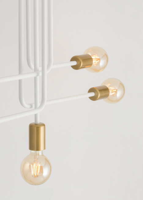 - Lampa sufitowa w stylu loftowym z odkrytymi żarówkami.