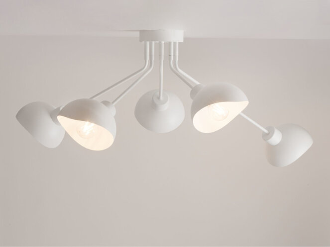 - Nowoczesny plafon w kolorze białym wykonany ze stali lakierowanej to eleganckie i uniwersalne oświetlenie, które doskonale wpasuje się w różnorodne wnętrza.