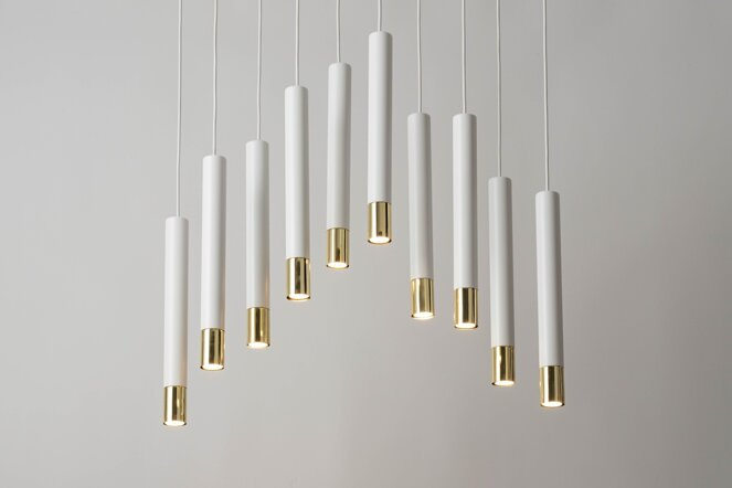 • Lampa podłużna wisząca. Lampa punktowa w kształcie stożka.