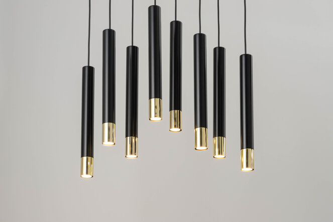 - Lampa podłużna wisząca. Lampa punktowa w kształcie stożka.