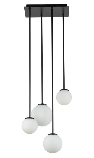 - Lampa zakończona okrągłymi, mlecznymi, szklanymi kloszami.