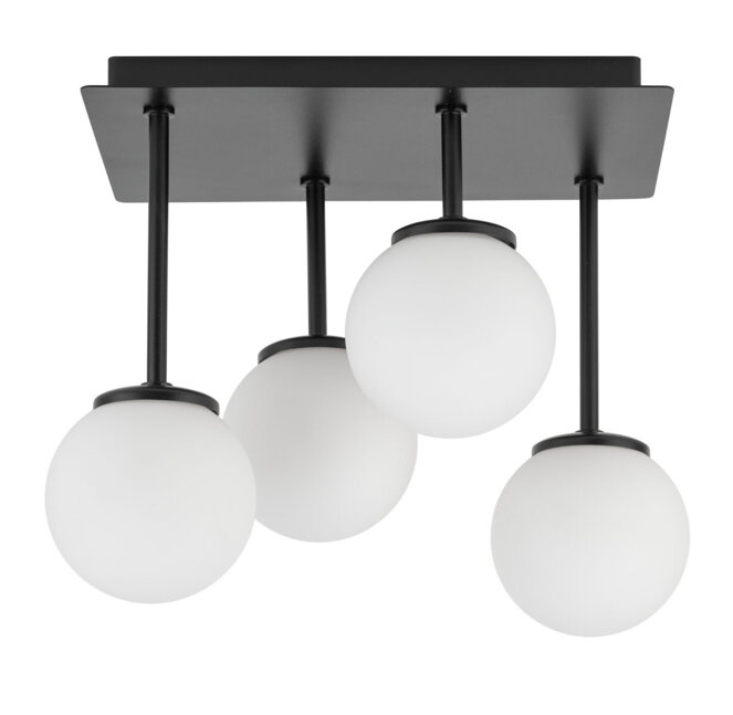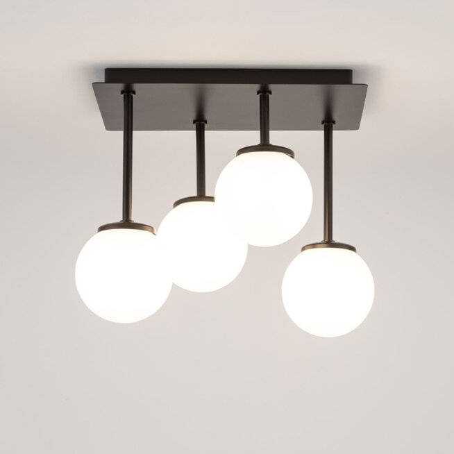 - Lampa zakończona okrągłymi, mlecznymi, szklanymi kloszami.