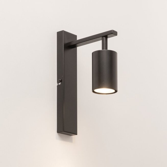 - Minimalistyczny kinkiet z czarnym kloszem.