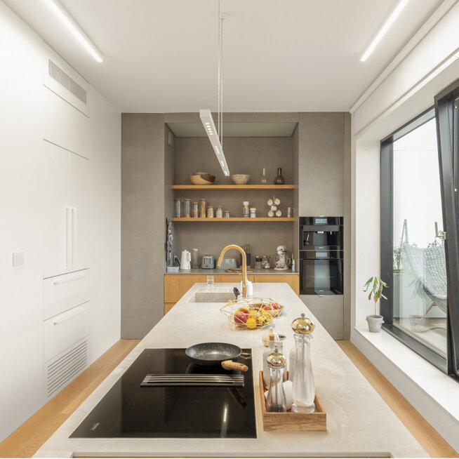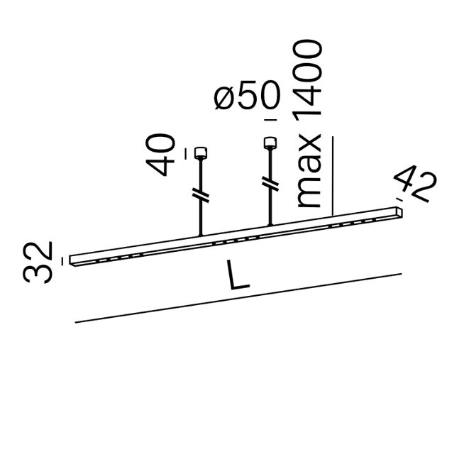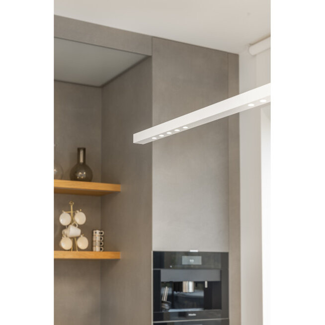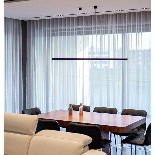 • Oprawa charakteryzuje się liniowym kształtem, Oprawa jest dyskretna i minimalistyczna. Zapewnia skupione światło. Dostępne rozmiary 96 cm, 149 cm, 202 cm