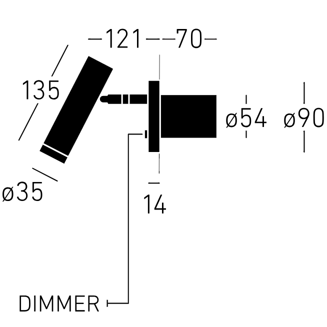 Kinkiet MFlask H K przeznaczony jest do montażu w zagłówku lub w ścianie. Baza o średnicy 90 mm wystaje poza płaszczyznę tylko na 5 mm.