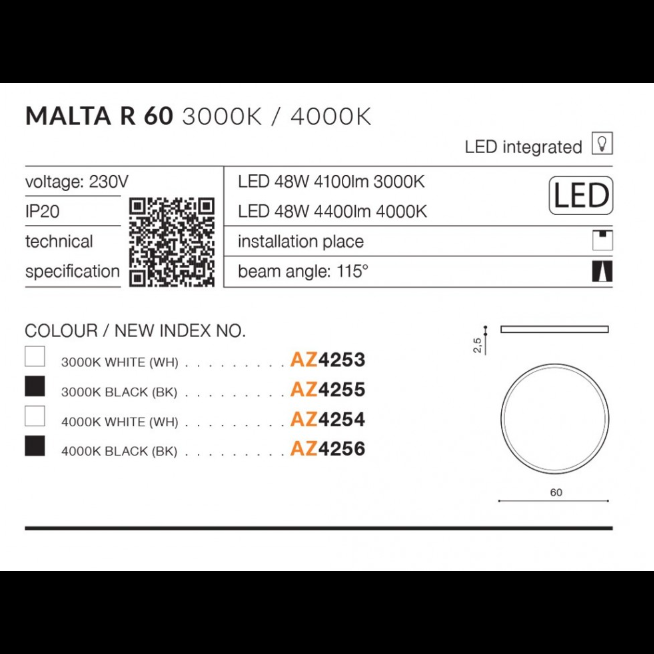 Malta R60 to wersja plafonu z popularnej rodziny lamp dostępnych w naszej ofercie. Można je stosować zarówno pojedynczo, jak i zestawiać w różnorodne konfiguracje, tworząc zróżnicowane systemy oświetleniowe, które zapewniają optymalne warunki świetlne w każdym pomieszczeniu, niezależnie od jego wielkości i kształtu.