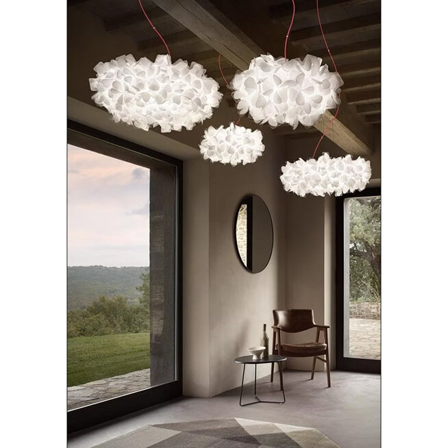 Clizia to seria kształtów, które pasują do siebie, tworząc idealną równowagę odbić i przezroczystości. Lampa nawiązuje do naturalnych form, przypominających chmurę, która łapie pierwsze zmieniające się promienie porannego słońca, lub wierzchołek drzewa filtrujący grę światła i cienia. Wszystkie dostępne wersje łączą estetykę z funkcjonalnością, charakteryzując się systemem magnetycznym, łączącym je z sufitem (w przypadku zawieszeń i aplikacji). Clizia przekształca przestrzeń w krajobraz, nie przytłaczając jej.