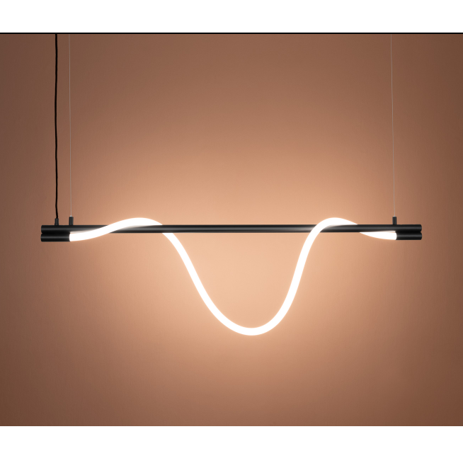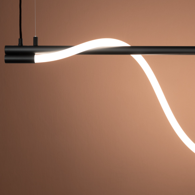 Spritzer to lampa o dynamicznych, płynnych kształtach. Światło, zamknięte w elastycznej tubie, rozchodzi się delikatnie wzdłuż precyzyjnie zdefiniowanych linii. Ta elegancka oprawa doskonale współgra w grupie z innymi lampami tego samego rodzaju, tworząc niepowtarzalne konstelacje świetlne.