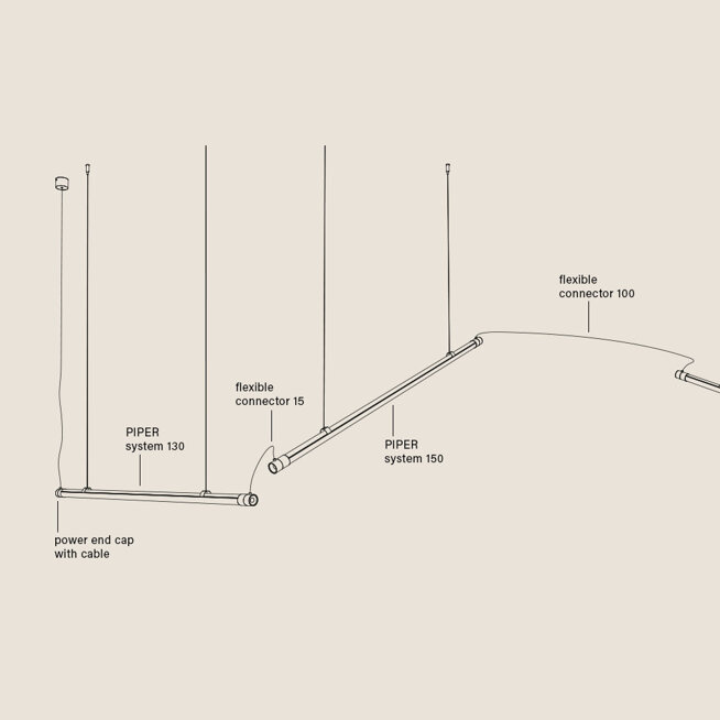 - System PIPER to modułowość i elastyczność. Lampa o długości 130 cm to element, który umożliwia stworzenie większej konstrukcji. Oprawa wymaga nabycia innych elementów systemu Piper.