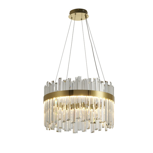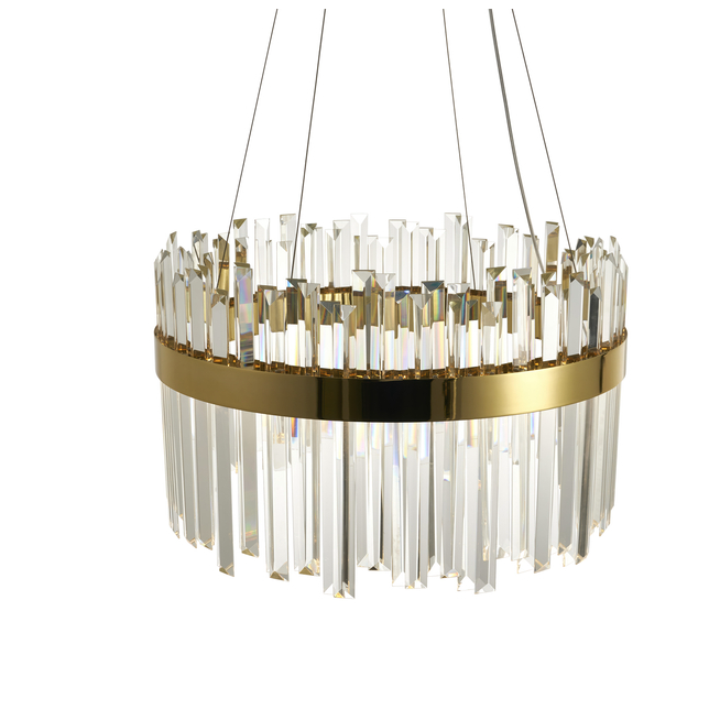 Lampa wisząca Royal LED w kolorze złotym z kryształowymi elementami to wyjątkowy wybór, który wnosi do wnętrza elegancję i luksusowy blask. Jej okrągły kształt oraz złote wykończenie tworzą harmonijną całość, a kryształowe detale przyciągają wzrok i pięknie rozpraszają światło, dodając pomieszczeniu wyrafinowanego charakteru. Dzięki przemyślanemu designowi lampa ta doskonale komponuje się zarówno z klasycznymi, jak i nowoczesnymi aranżacjami, stając się głównym punktem dekoracyjnym każdego wnętrza.