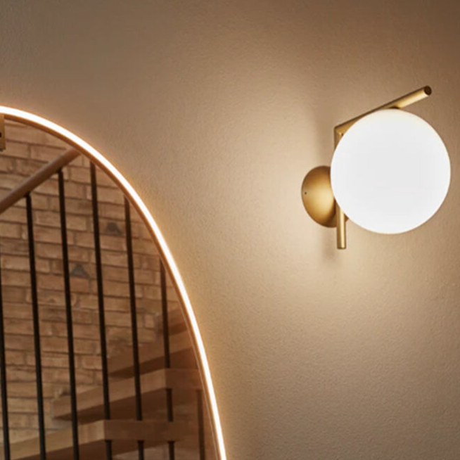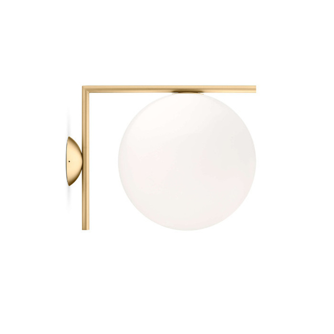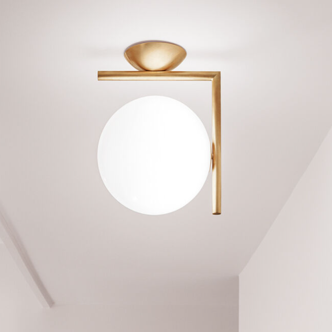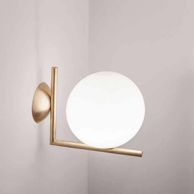 - Lampa ścienno-sufitowa IC Lights wyróżnia się minimalistycznym designem, który łączy elegancką mosiężną ramę z idealnie kulistym kloszem. Ten model dodaje wnętrzu subtelnego, nowoczesnego uroku.