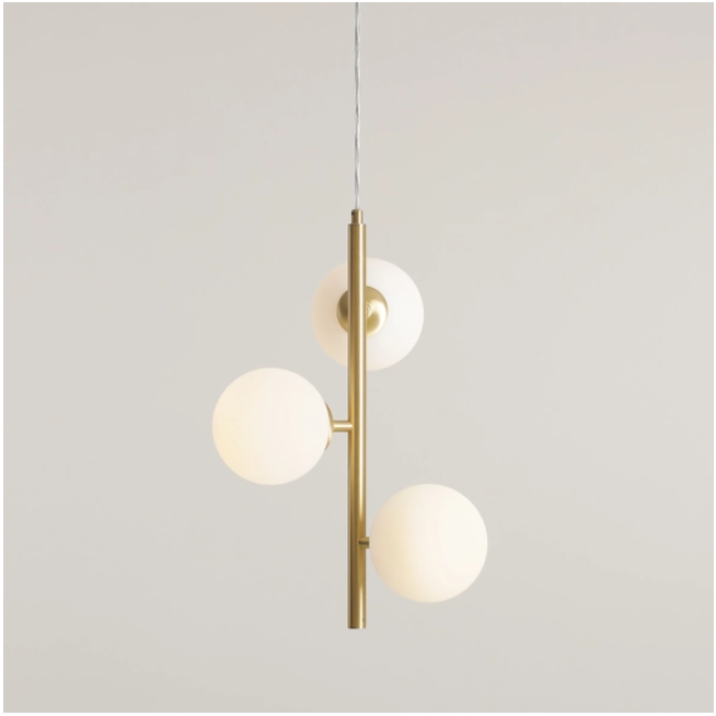 - Lampa wisząca FIN 3 Brass S to stylowy element oświetleniowy o kompaktowych wymiarach, idealny do mniejszych przestrzeni. Jej nowoczesny design z mosiężnym wykończeniem dodaje wnętrzom elegancji i wyrafinowanego charakteru.