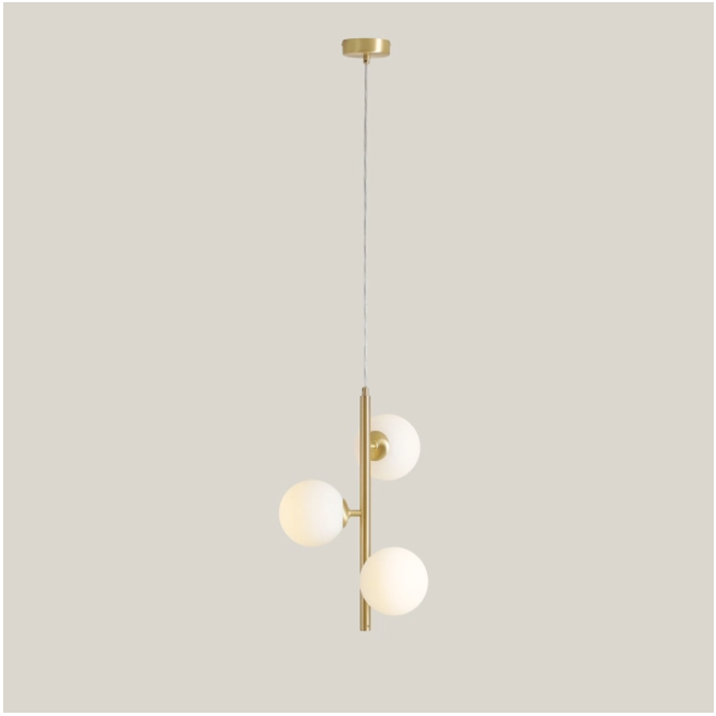 Trzy delikatne punkty świetlne zostały rozmieszczone na smukłej konstrukcji, co zapewnia równomierne i przyjemne oświetlenie przestrzeni. Dzięki swoim niewielkim wymiarom lampa świetnie sprawdzi się w mniejszych pomieszczeniach, takich jak kuchnia, przedpokój czy niewielki salon. Możliwość regulacji wysokości pozwala dostosować jej ustawienie do indywidualnych potrzeb i charakteru wnętrza.