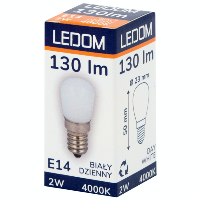 - Żarówka LEDOM E14 2W 4000K marki LED line LITE to energooszczędne, wydajne źródło światła o trwałości 50 000 godzin, strumieniu świetlnym 130 lumenów, szerokim kącie świecenia 270° i neutralnym białym świetle, idealna do przestrzeni roboczych.