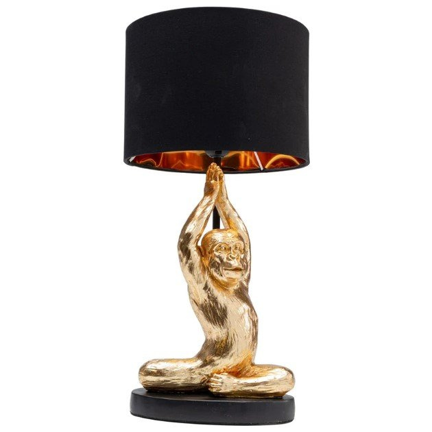 Złotą podstawę, przedstawiającą małpę ćwiczącą jogę, wieńczy czarny abażur ze złotym wnętrzem.