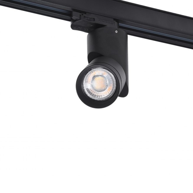 Reflektor Santos Track 3 Line GU10 to niewielka, cylindryczna oprawa, w której znajduje się miejsce na pojedyncze źródło światła. Wykonana z trwałego metalu, dostępna jest w dwóch kolorach: czarnym i białym, co ułatwia dopasowanie do innych akcesoriów systemu szynoprzewodowego.