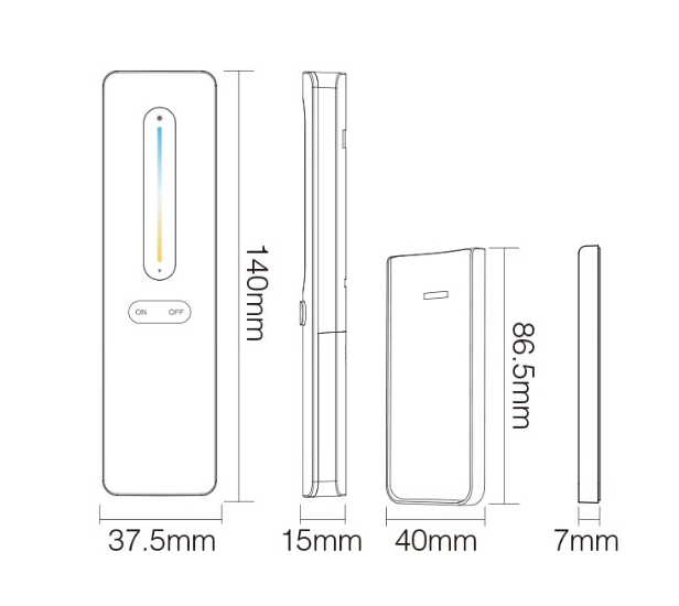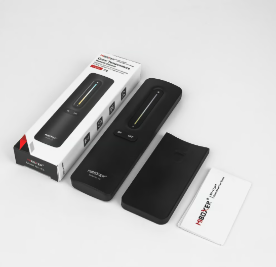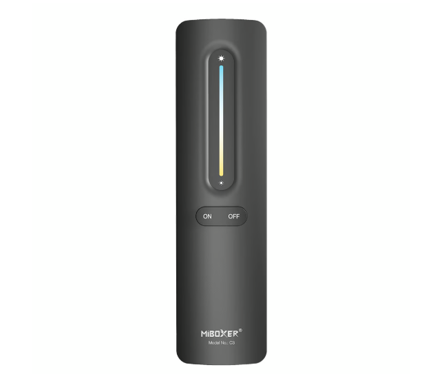 - Pilot C3 Mi-Light umożliwia zdalne sterowanie jasnością i temperaturą barwową światła białego (ciepłego, neutralnego, zimnego) z zasięgiem do 30 m, obsługując 1 strefę przy użyciu suwaka i fal radiowych 2.4GHz.