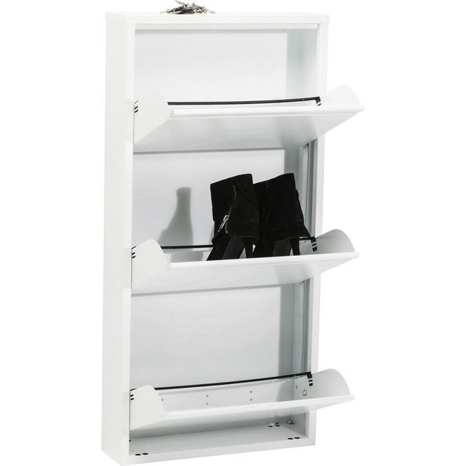 Ta elegancka szafka na buty przypadnie do gustu miłośnikom nowoczesnych dodatków.