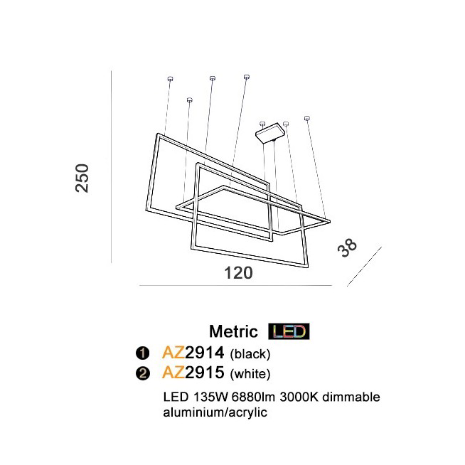 • Lampa wisząca Metric marki Azzardo to nowoczesne oświetlenie o geometrycznej formie, które łączy minimalistyczny design, funkcjonalność i wysoką jakość wykonania, idealnie sprawdzając się w nowoczesnych i loftowych wnętrzach.