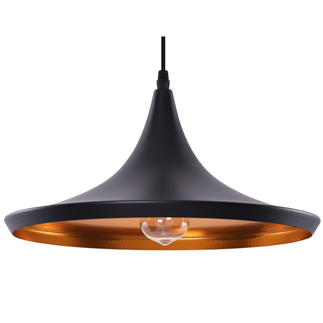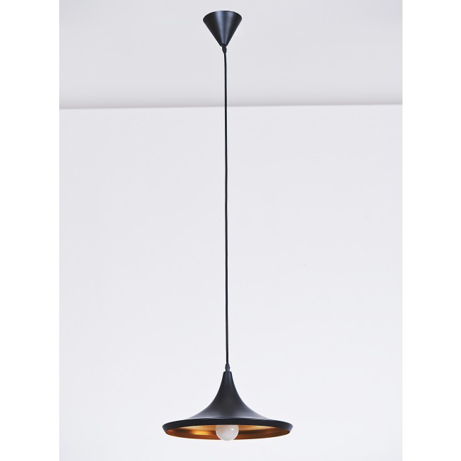 Dzięki złotemu wykończeniu wnętrza klosza lampa rozprasza miękkie, ciepłe światło, idealnie nadając się do salonu, jadalni czy sypialni. Jej uniwersalna estetyka pozwala na zastosowanie zarówno pojedynczo, jak i w zestawie kilku lamp, tworząc efektowną kompozycję świetlną.