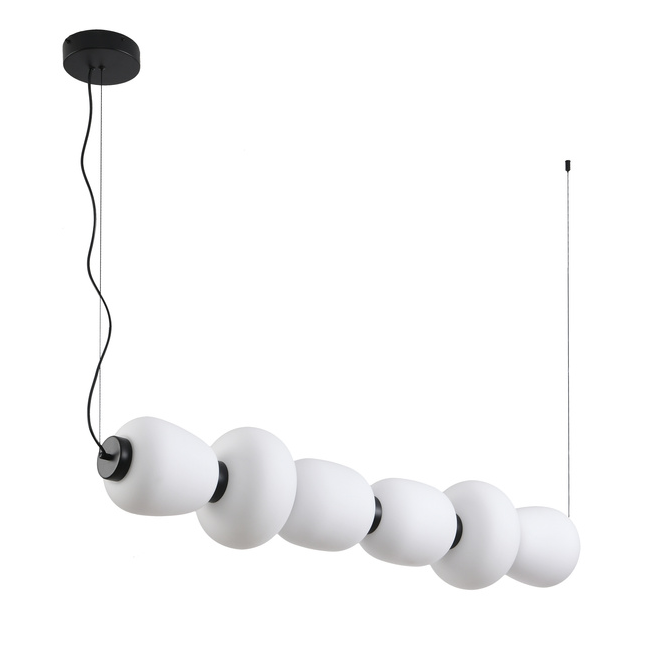 • Luksusowa lampa wisząca BRILLA-6 przypomina poziomo ułożone białe kamienie. Składa się z sześciu segmentów o zaokrąglonych, organicznych kształtach, ustawionych horyzontalnie.