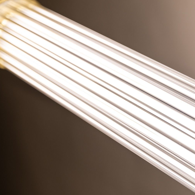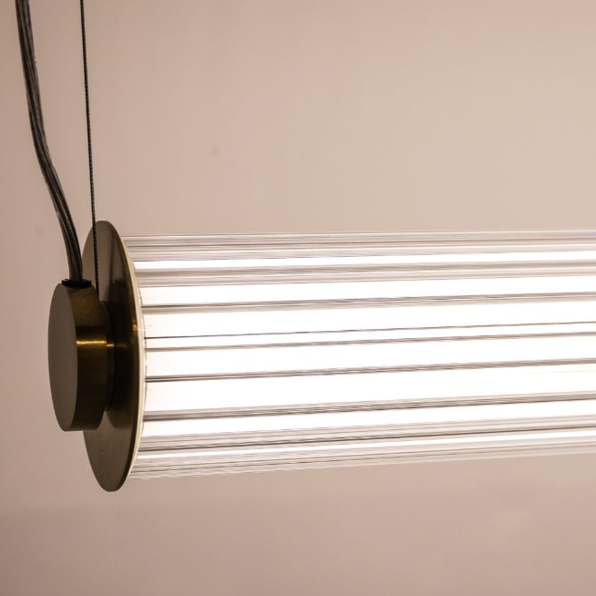 - Nowoczesna lampa wisząca ze zintegrowanym źródłem światła LED, w kolorze mosiężnym