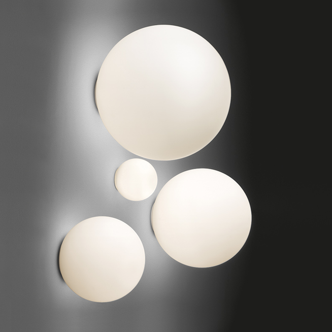 Dioscuri 25 to uniwersalna lampa, którą można zamontować zarówno na suficie, jak i na ścianie jako kinkiet. Jej prosta, kulista forma wykonana jest ręcznie z mlecznobiałego szkła, co pozwala na równomierne i przyjemne rozproszenie światła, bez efektu oślepiania.