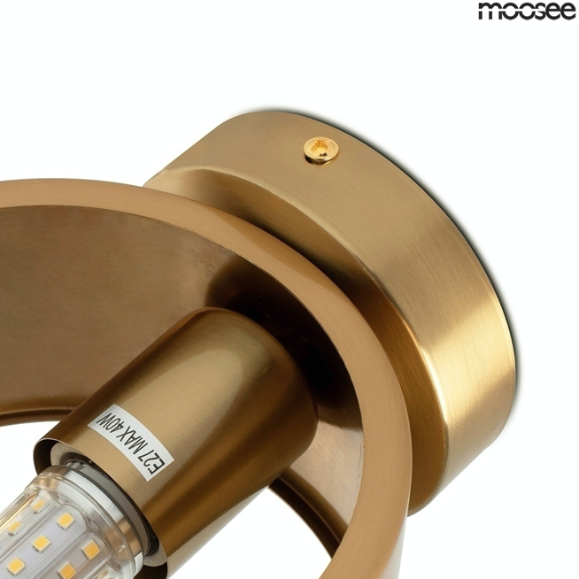 - Kinkiet Moosee to elegancka oprawa ścienna ze złotymi detalami, idealna do stylowych, nowoczesnych i klasycznych wnętrz.