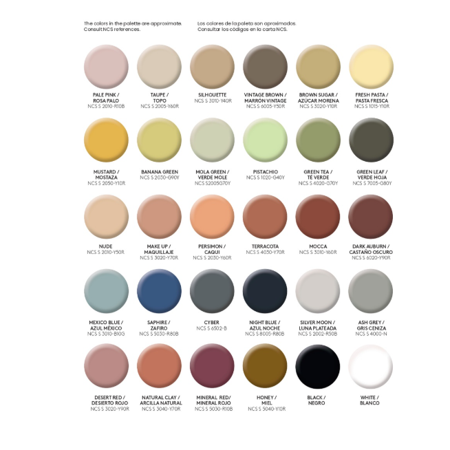 TERAKOTTA lub MEKSYKAŃSKI NIEBIESKI lub MUSZTARDOWY lub CIELISTY lub SILHOUETTE lub BRĄZ STAROŻYTNY lub MIODOWY lub TAUPE lub NATURALNA GLINA lub BANANOWA ZIELONY lub GREEN LEAF lub PALE PINK lub MINERALNA CZERWIEŃ lub MAKE UP lub DESERT RED lub GREEN MOLE lub WHITE lub BLACK lub ASH GREY lub OTHER lub MOCCA lub NIGHT BLUE lub PISTACIO lub GREEN TEA lub CYBER lub SAFHIRE lub FRESH PASTA lub BROWN SUGAR lub PERSIMON lub SILVER MOON lub DARK AUBURN