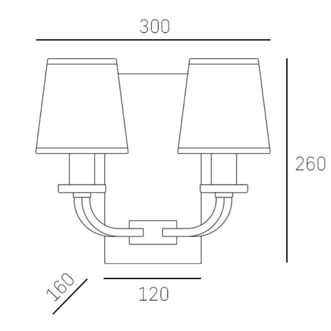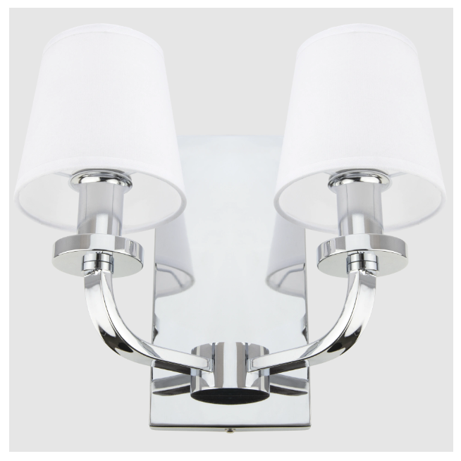 - Elegancki kinkiet z dwoma tekstylnymi abażurami