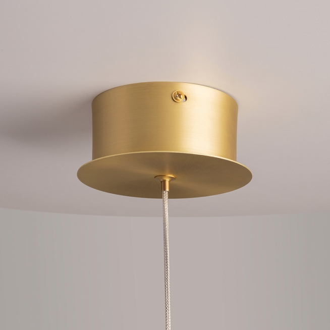 Regulowana długość zawieszenia sprawia, że lampę można idealnie umieścić w przestrzeniach z wysokim sufitem – sprawdzi się nad stołami, wyspami kuchennymi lub w salonach, łącząc styl z użytecznością.