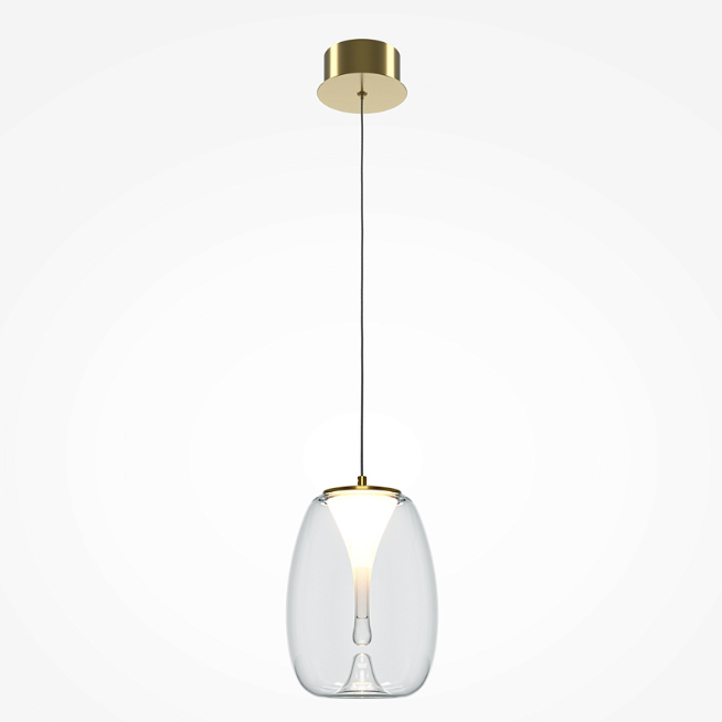Lampa wisząca Maytoni Splash łączy w sobie złocistą, satynowaną podstawę z delikatnym, przydymionym kloszem z ombre szkła, tworząc efektowny, minimalistyczny akcent w nowoczesnych wnętrzach.