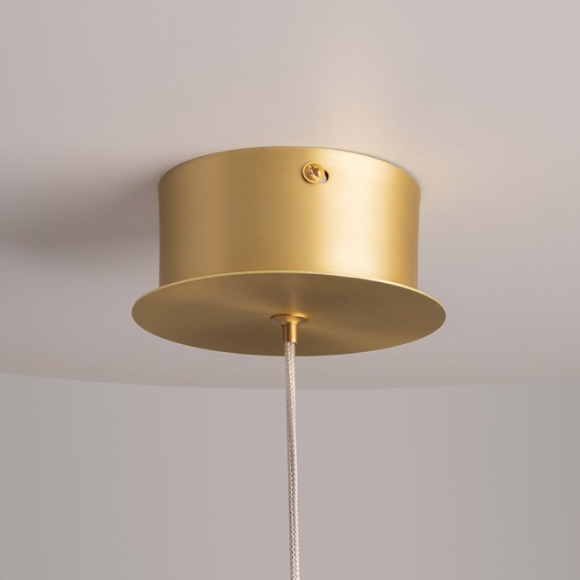 Regulowana długość zawieszenia sprawia, że lampę można idealnie umieścić w przestrzeniach z wysokim sufitem – sprawdzi się nad stołami, wyspami kuchennymi lub w salonach, łącząc styl z użytecznością.