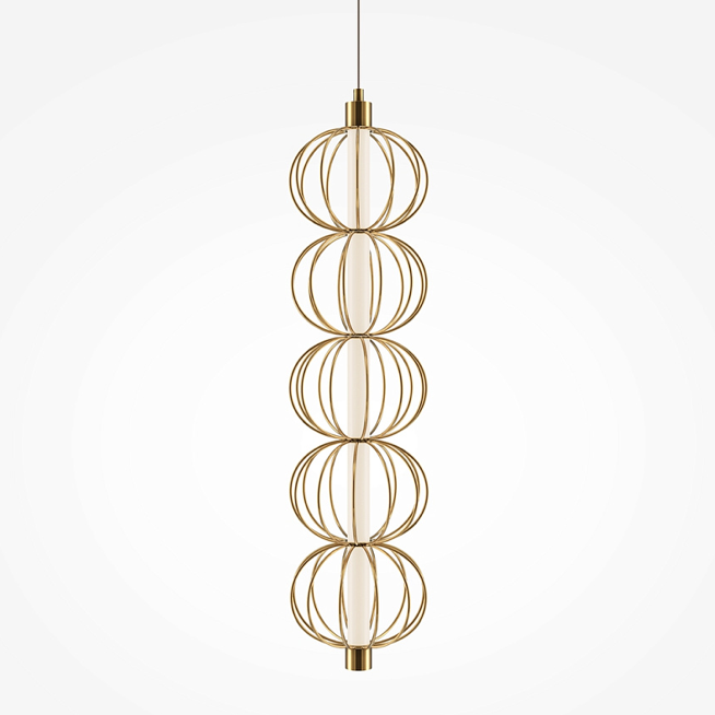 Lampa wisząca Golden Cage od Maytoni przyciąga wzrok przez misterną konstrukcję z metalowych drucianych sfer utrzymanych w eleganckim złotym wykończeniu, które otaczają silikonowy dyfuzor z wbudowanym źródłem światła — autorski projekt łączący rzemieślniczą finezję z nowoczesną estetyką.