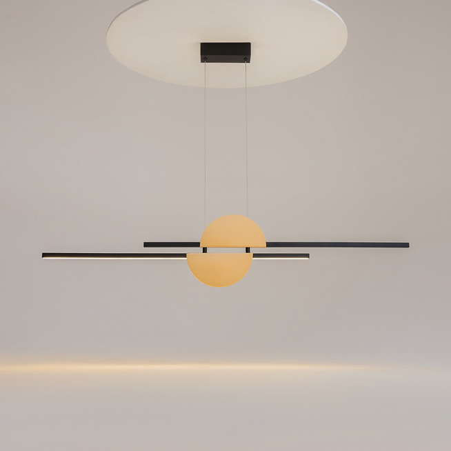 - Lampa wisząca Maytoni Skyline łączy minimalistyczny, czarno-złoty design z wydajnym oświetleniem LED i regulowanym zawieszeniem, tworząc eleganckie i funkcjonalne rozwiązanie do nowoczesnych wnętrz.