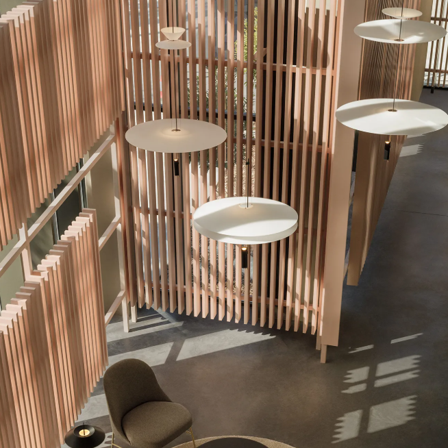 Projekt lampy Flamingo stworzony został w fabryce marki Vibia, która jest hiszpańskim producentem marki premium. Marka Vibia produkuje wiele produktów renomowanych projektantów. Autorem projektu lampy Flamingo jest Projektant Antoni Arola. Vibia posiada wyraźny system wartości, na który składają się estetyka oraz do wzornictwa.