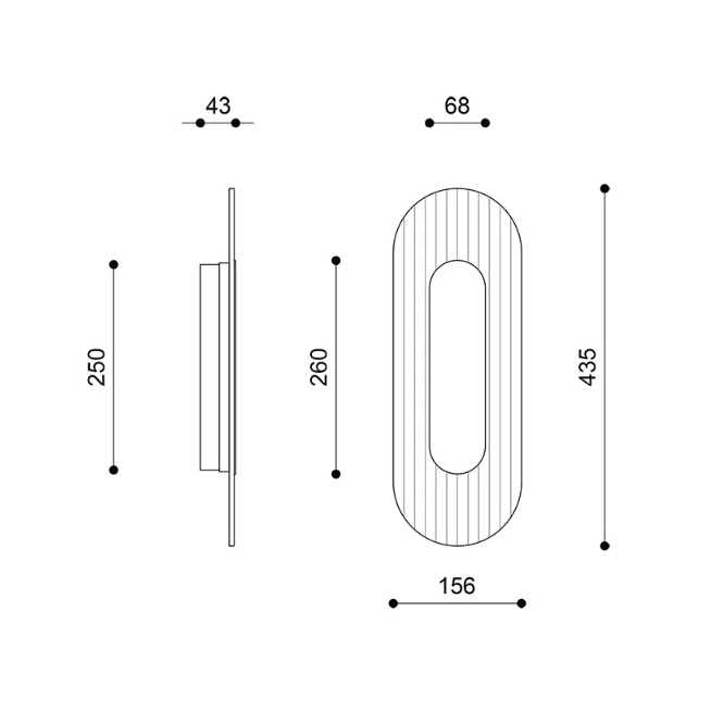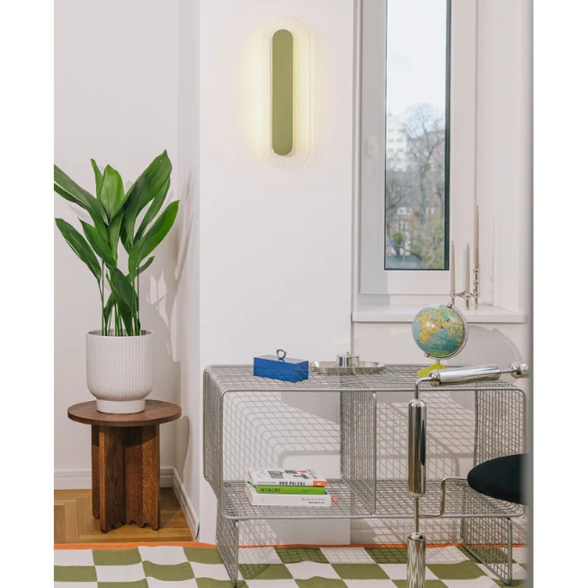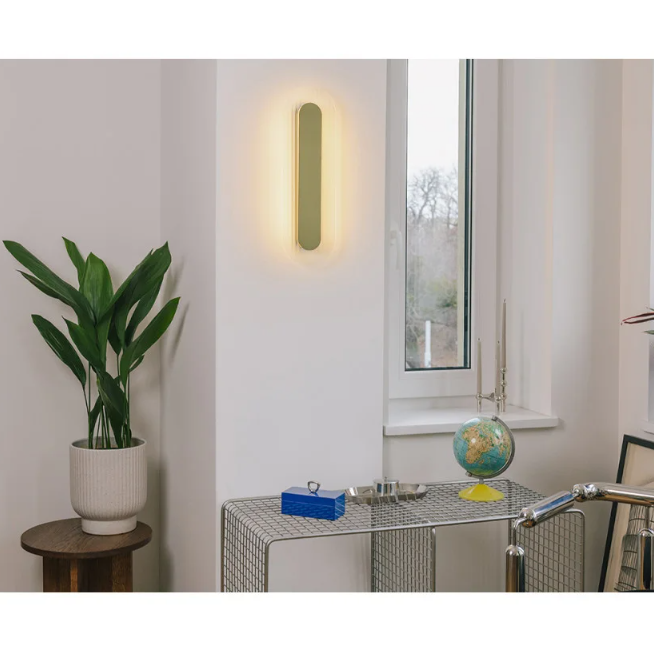 RIFLO W A to kinkiet o subtelnej, geometrycznej formie. Spłaszczony, owalny kształt przywodzi na myśl modernistyczną architekturę – prostą i funkcjonalną bryłę, która emanuje elegancką prostotą.