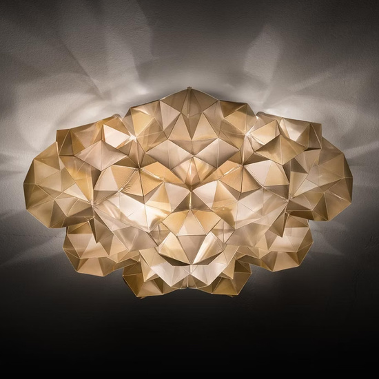 Podobnie jak światło uderza w kryształy wystające ze szczelin skały, tworząc nieustannie zmieniający się, poetycki i wielopostaciowy kalejdoskop, Drusa to współczesna lampa zaprojektowana na wzór diamentu. Starannie wykonana ręcznie i wyposażona w magnetyczny uchwyt, dzięki nieregularnemu kształtowi i cennym refleksom ciepłego aksamitnego wykończenia nadaje charakteru każdemu wnętrzu.
