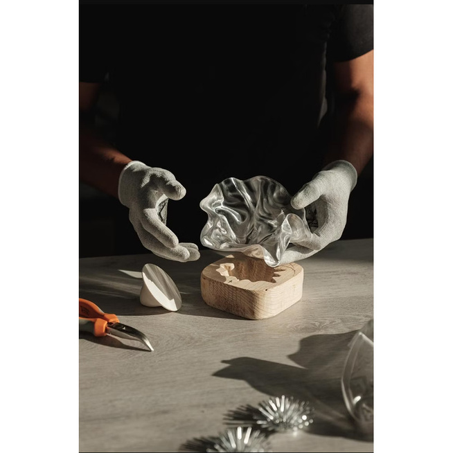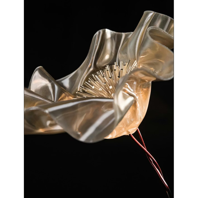 Marc Sadler ręcznie wyrzeźbił ekskluzywny, niezniszczalny technopolimer Lentiflex firmy Slamp w kontrolowanej temperaturze, tworząc rozświetlony kwiat. Aplikacja LaFleur jest dostępna w wykończeniu Prisma lub Velvet, odpowiednio z matową białą lub czarną podstawą, osadzoną na plecionym miedzianym trzonku, który można wygiąć pod żądanym kątem. Miękkie, poetyckie źródło światła stanowi wymienna dioda LED G4 z możliwością ściemniania, idealna pojedynczo lub w grupach rozrzuconych wzdłuż korytarza, w przedpokoju lub nad łóżkiem.