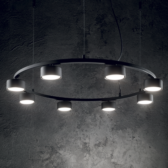 Lampa wisząca Minor round od producenta Ideallux wykonana jest z metalowej ramy w kolorze czarnym.