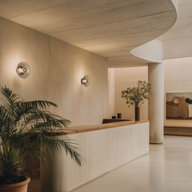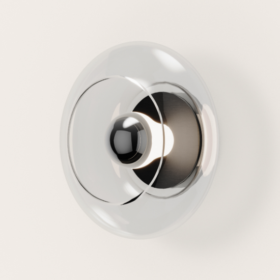 Projekt kinkietu Vitree wyróżnia się harmonijnym połączeniem materiałów, które daje efekt subtelnej obecności światła i wyjątkowego klimatu we wnętrzu. Delikatne światło odbijające się od szklanej powierzchni tworzy nastrojową aurę, podkreślając dekoracyjny charakter pomieszczenia i budując przyjemną atmosferę do relaksu lub spotkań towarzyskich.