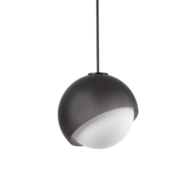 • Metalowy stelaż oraz kulisty klosz wykończony w kolorze czarnym.