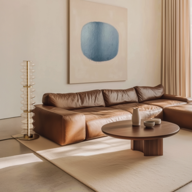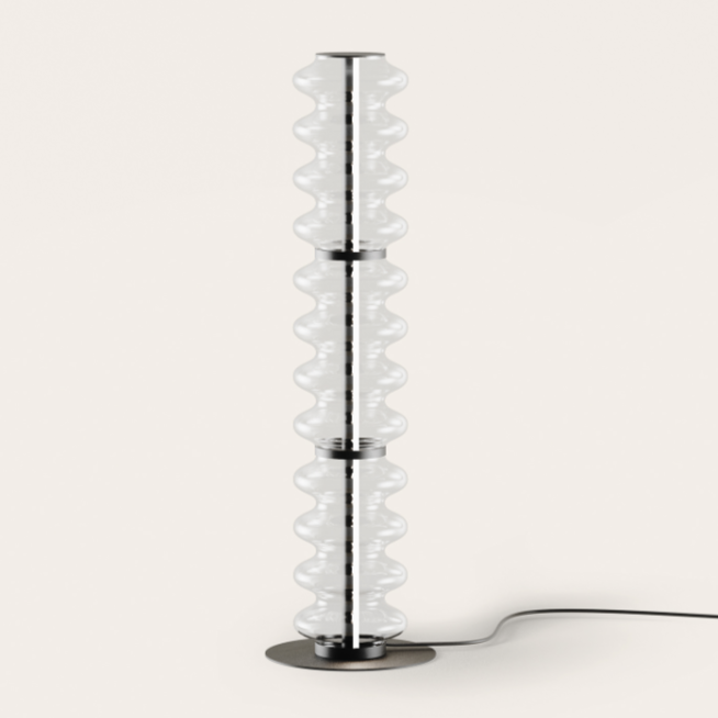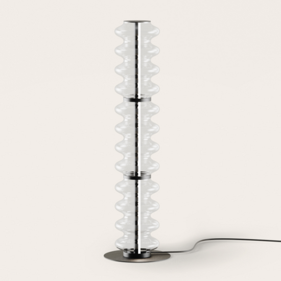 • Lampa stojąca Vitree to eleganckie, nowoczesne oświetlenie, które łączy lekką formę szkła i metalu, tworząc stylowy akcent dekoracyjny i przytulną atmosferę w salonie, sypialni lub designerskiej przestrzeni.