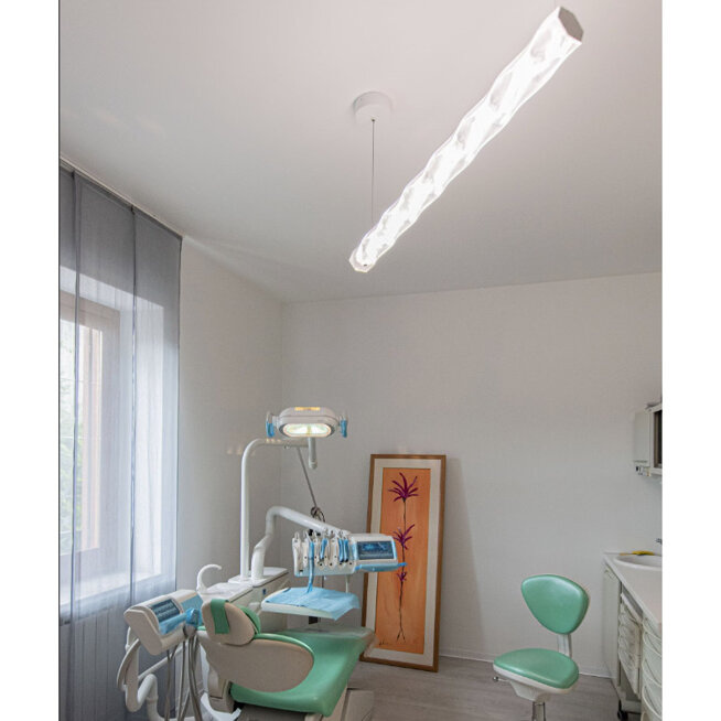 - Lampa wykonana z nowatorskiego materiału LENTIFLEX Projekt autorstwa zespołu kreatywnego Slamp. daje światło płyne jak woda. Zdobywca nagrody Red Dot Product Design Award, Hugo spełnia wymagania normy UNI EN 12464-1:2011,