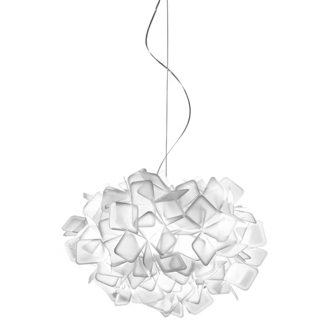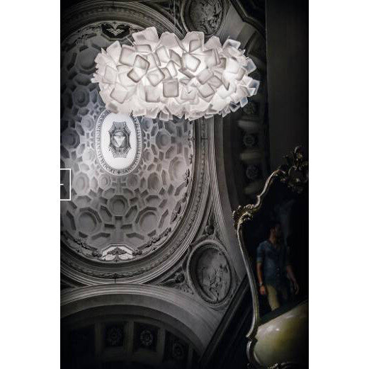 Clizia to seria kształtów, które pasują do siebie, tworząc idealną równowagę odbić i przezroczystości. Lampa nawiązuje do naturalnych form, przypominających chmurę, która łapie pierwsze zmieniające się promienie porannego słońca, lub wierzchołek drzewa filtrujący grę światła i cienia. Wszystkie dostępne wersje łączą estetykę z funkcjonalnością, charakteryzując się systemem magnetycznym, łączącym je z sufitem (w przypadku zawieszeń i aplikacji). Clizia przekształca przestrzeń w krajobraz, nie przytłaczając jej.