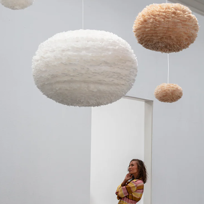 Lampa EOS duńskiej marki UMAGE została wykonana z naturalnych gęsich piór,