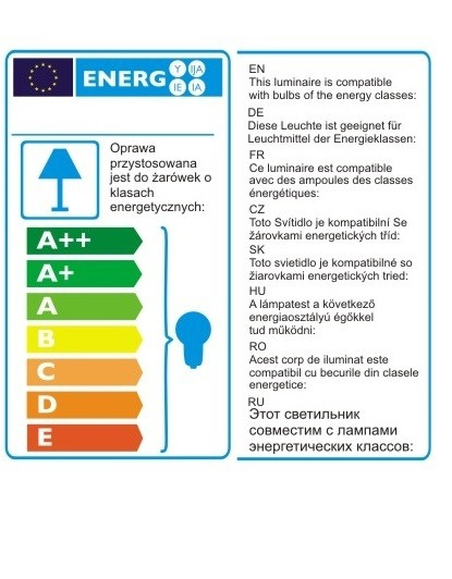 oprawa dostosowana do źródeł światła w klasach energetycznych od A++ do E.