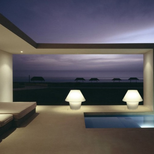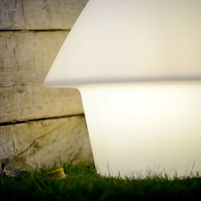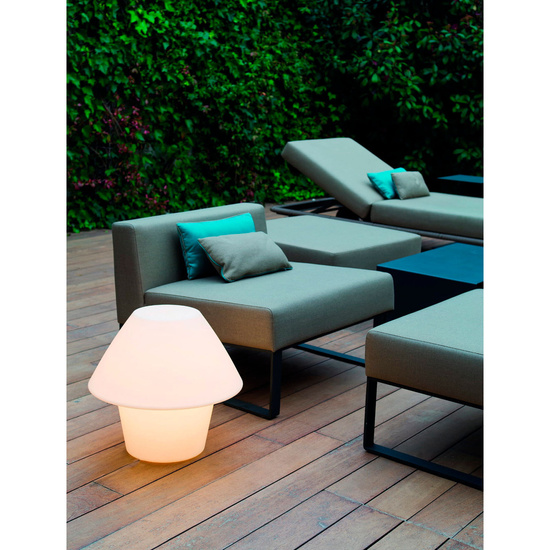 - Nowoczesna lampa stołowa ogrodowa wykonana z polietylenu o średniej gęstości. Zaprojektowana przez: Pepe Llaudet. Wyprodukowana w Hiszpanii