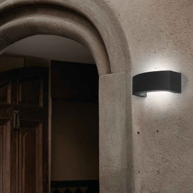 Nowoczesna lampa ścienna zewnętrzna wykonana z odlewu aluminiowego z opalowym dyfuzorem poliwęglanowym.